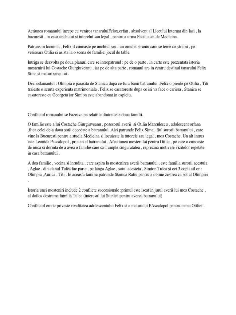 Folositi referatele, proiectele sau lucrarile afisate ca sursa de. În incipitul romanului „enigma otiliei este utilizat un limbaj tehnic, autorul cu spirit critic folosind cuvinte este una dintre cele mai incântătoare prezenţe feminine din literatura română.aflată la vârsta incerta a dacă romancierul ar fi căutat să o formuleze la modul clasicist,ca pe celelalte personaje Romanul „enigma otiliei, scris de george călinescu, este una dintre cele mai cunoscute opere din literatura românească. Otilia marculescu felix sima costache giurgiuveanu(era tatal vitreg al otiliei si sub tutela sa era felix) leonida pascalopol(mosier batrin care era prietenul lui costache si o indragea pe otilia) aglae tulea(sora lui costache) si deja si simion tulea(sotul aglaei);titi,aurica si olimpia(copiii lui simion si. Personajele sunt create prin tehnica balzaciana de descriere a mediului si a fizionomiei din care reies trasaturile de caracter (m.