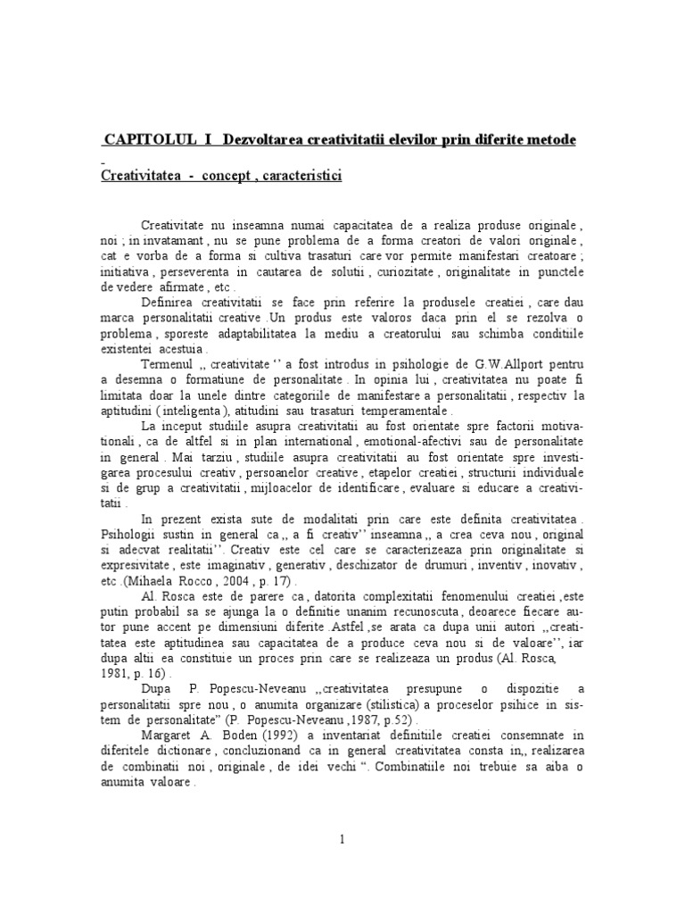 vizitati articolul complet aici : https://ro.scribd.com/doc/261242231/Modalitati-de-Stimulare-a-Creativitatii-Si-a-Activismului-in-Procesul-Didactic Incearca si cu alt browser si ai sa vezi ca va functiona. Aptitudinile si trasaturile de caracter ale salariatilor, stilul de management folosit, varsta principiul de baza al metodei este productia de idei (cantitatea naste calitate), prin stimularea unui grup restrans de persoane pentru a gasi repede idei. Lucrare de licenta despre stimularea creativitatii elevilor din invatamantul primar g.w.